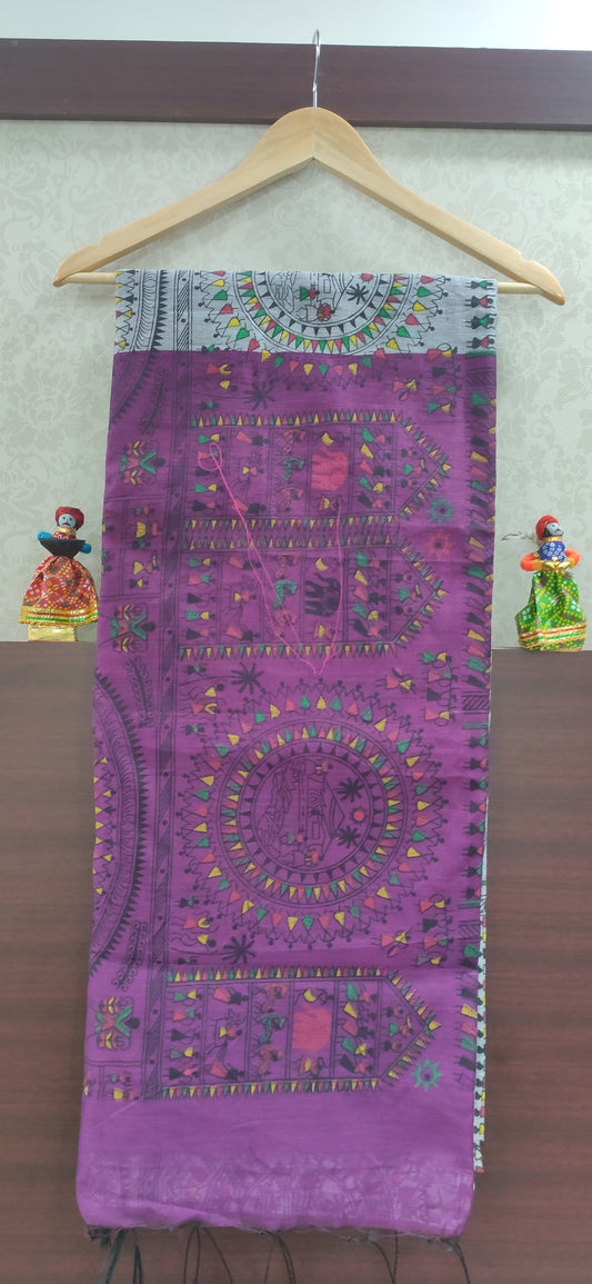 Madhubani Saree Cotton Handloom (Purple White)