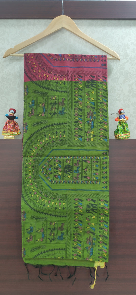 Madhubani Saree Cotton Handloom (Purple Green)